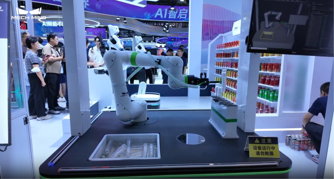 搭配具身智能“眼+脑”,机器人可以高速、高精度处理透明等复杂物体。在该展示单元中,协作机器人能够以亚毫米级精度自主识别透明物体,并通过智能抓取规划+运动控制,实现透明物体的快速精准放置。适合医药、工业等领域各类透明物体高速分拣需求。