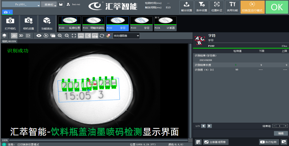 ④ 字符识别:运用汇萃视觉算法OCR(光学字符识别)技术识别字符。