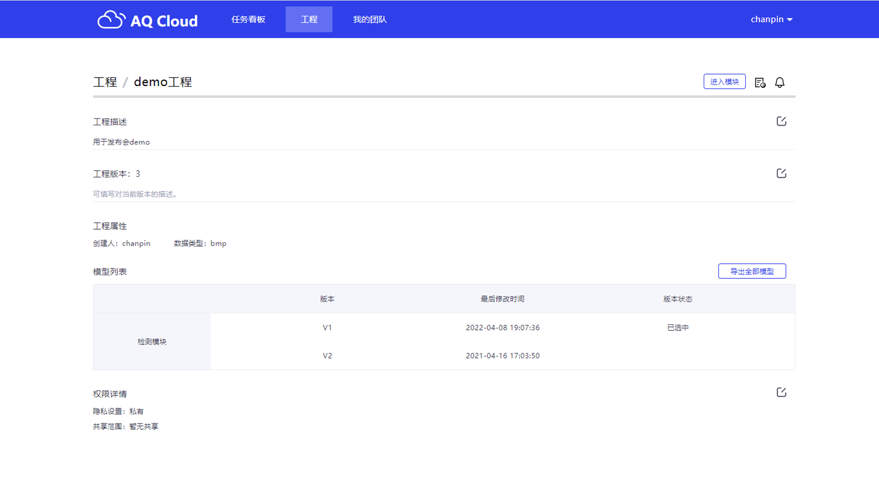 ▲用户账号管理 ▲用户权限管理5. 模型部署