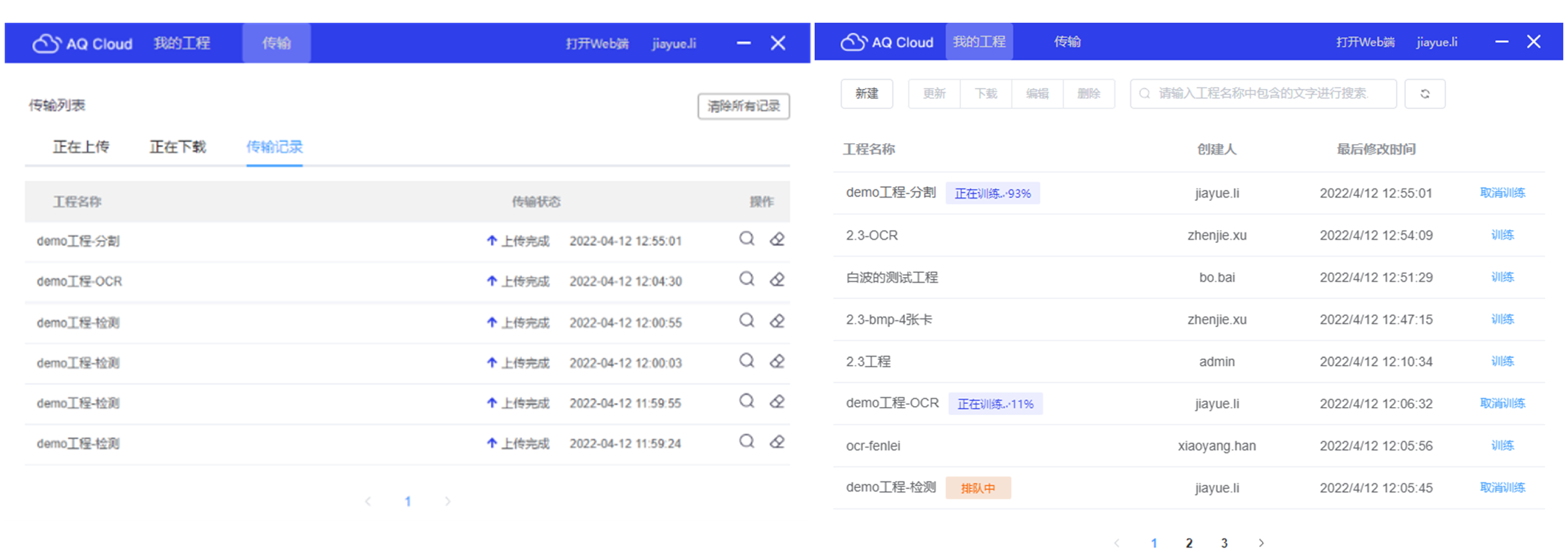 云端训练:支持用户在本地使用云端训练资源;支持训练进度简要查看