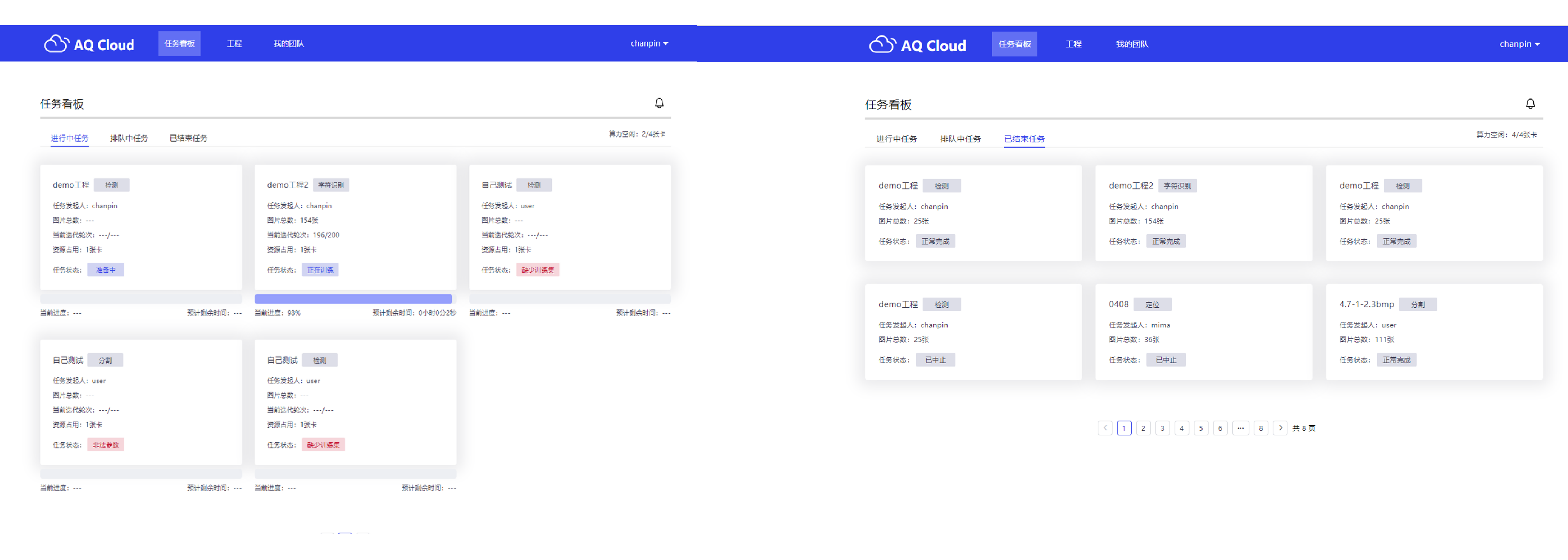 任务看板:支持资源占用查看;支持任务状态、进度查看