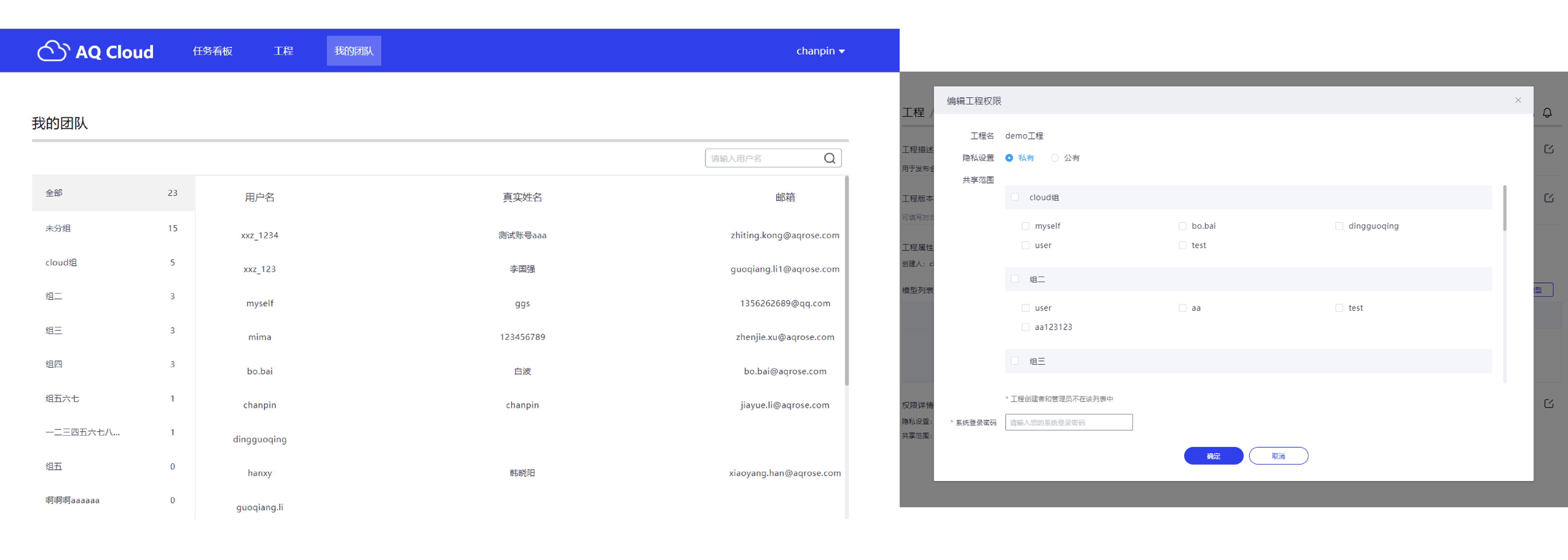 用户权限管理:支持群组管理(管理员);支持工程权限设置,可分享工程
